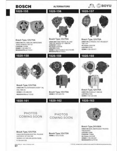 Bosch Type, 12V/70A Bosch Type, 12V/70A 220-5163 (CAN REPLACE THIS) AND BUSESTRUCKS AND BUSES