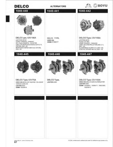 DELCO ype, 12V/190A              DELCO  TYPE,                       DELCO Type, 12V/105A                       FORD 1G Small, 12V/55A            FORD 1G Small, 12V/40A           FORD 1G Small, 12V/60A